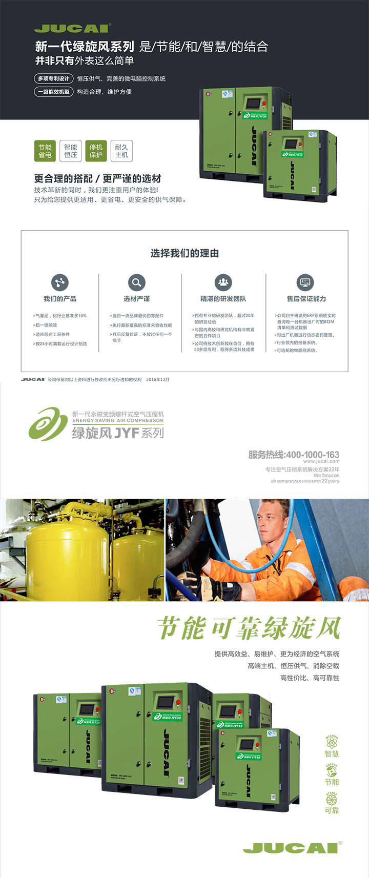 您的(de)位置: 首頁(yè) -> 產(chǎn)品中心 -> 聚才空壓機 -> 永磁變頻綠旋風JYF10空壓機